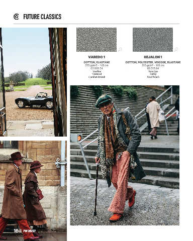 FUTURE CLASSICS + + VAREDO 1 KEJALON 1 COTTON, ELASTANE COTTON, POLYESTER, VISCOSE, ELASTANE 275 gr/m2 - 145 cm 310 gr/m2 - 145 cm 03.020.04 03.512.04 Mouline Yarn Dye Textured Dobby Comfort Stretch Wool Touch 16 | FW 26/27