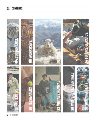CONTENTS 04 COTTON LUXE 06 WORKSCAPE 10 WOOLY 14 FUTURE CLASSICS 18 PROTECTIVE 20 TECHLAYERS 22 VINTAGE REVIVAL 26 WINTERLY ESSENTIALS 30 SUSTAINABILITY 2 | FW 26/27