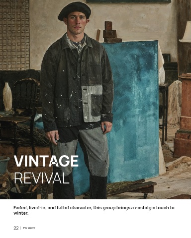 VINTAGE REVIVAL Faded, lived-in, and full of character, this group brings a nostalgic touch to winter. 22 | FW 26/27