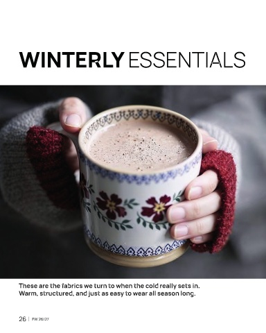 ROMANTIC WINTERLY ESSENTIALS These are the fabrics we turn to when the cold really sets in. Warm, structured, and just as easy to wear all season long. 26 | FW 26/27